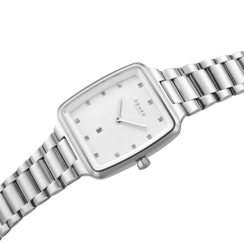 A contemporary, sleek barrel watch in a timeless silver colour. With crystals embellished into its dial and stylish, easy-read hands, this is an excellent everyday wear watch. Designed by Christian Mikkelsen, this watch is a stunning accessory to any outfit.